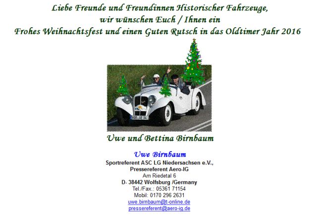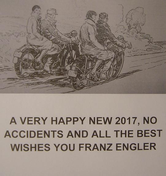 Grüsse von Dr.Georg W.Pollak, alles Gute im Neujahr und viele pannenfrei Kilometer.