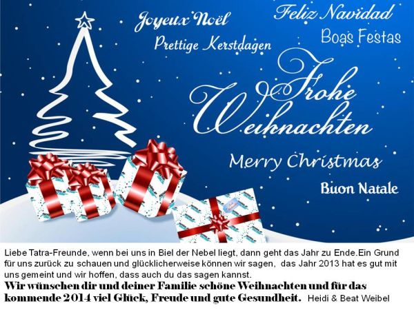 Liebe Tatrafreunde, für die Weihnachtstage wünschen wir euch viele schöne und ruhige Stunden und für das